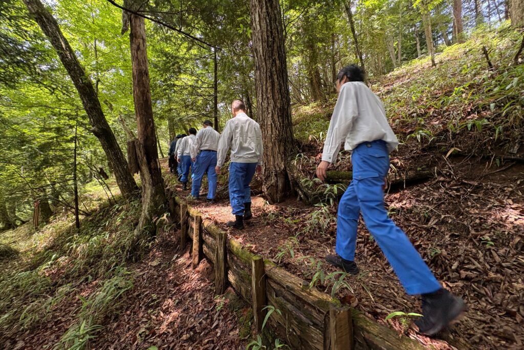 同社は、令和2年に東京都水道局と締結した協定に基づき、多摩川上流域の約2.77 haの水道水源林を「フソウの森」と名付け、森づくりの活動を継続しています。令和7年度は、7月および9月の計2回、混み合った木々を間引き森全体の成長を促す間伐作業を行いました。国内最大の水道専用ダムである小河内ダムの見学も行い、広大な水道水源林と貯水池の役割、当社事業のつながりを実地で学ぶ機会として活動を位置付けています。